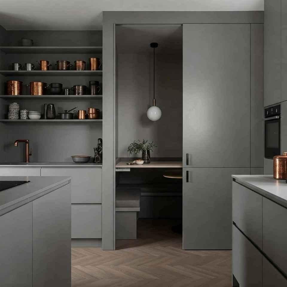 • Kitchen Cabinetry: Sleek modular designs with pull-out trays, spice racks, and integrated appliances.